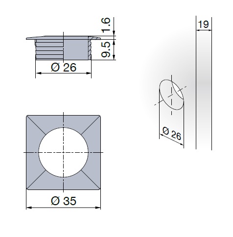 Розетка Квадратная 19 мм цилиндра замка Push Lock/ Push Esp Lock, никель арт.980-4849-251
