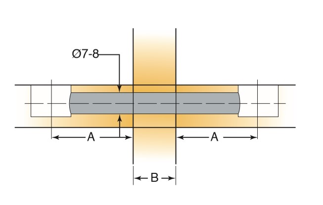 Дюбель со стопорным кольцом для торцевого соединения панелей. Можно использовать со всеми эксцентриками Cam2000 и Cam3000 (Ø12мм и Ø15мм). Угол регулировки от 90 до 180 градусов.