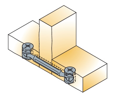 Дюбель со стопорным кольцом для торцевого соединения панелей. Можно использовать со всеми эксцентриками Cam2000 и Cam3000 (Ø12мм и Ø15мм). Угол регулировки от 90 до 180 градусов.