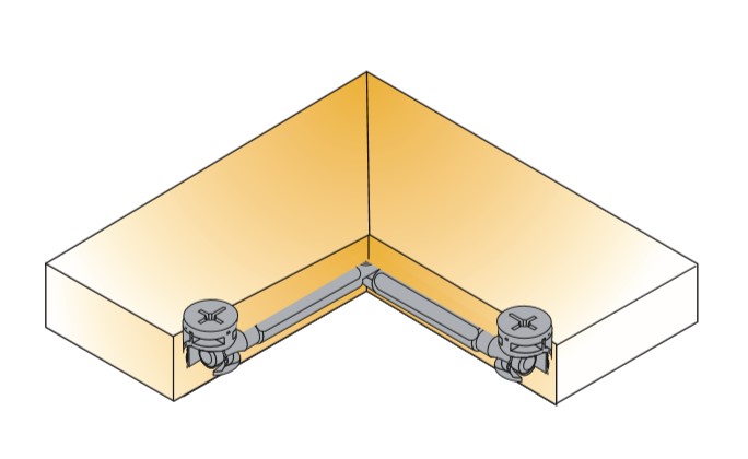 Дюбель для соединения панелей под углом. Можно использовать со всеми эксцентриками Cam2000 и Cam3000 (Ø12мм и Ø15мм). Угол регулировки от 90 до 180 градусов.