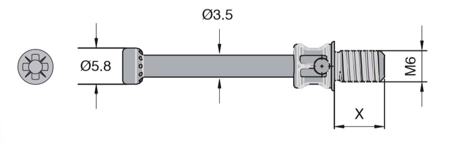 Метрический дюбель из цинка и стали с большим сопротивлением круению и вырыванию. Можно использовать со всеми эксцентриками Cam2000 и Cam3000 (Ø12мм и Ø15мм)