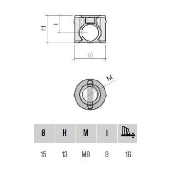 BO32ZZ Стяжка-бочонок D15x13 мм М8, цинк