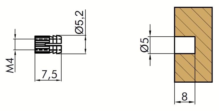 TC33.408.70 Футорка металлическая М4х7,5 мм (латунь)