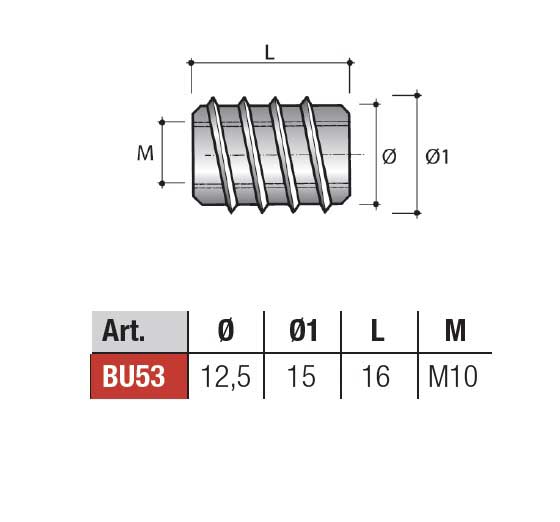 BU53ZL Футорка М10х16 мм (цинк)