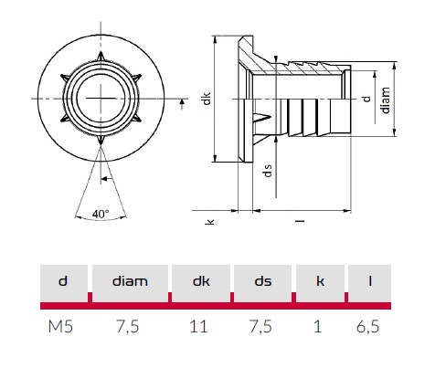 Футорка предназначена для штоков эксцентриковой и конической стяжек с резьбой М5 и регулируемых опор. Монтаж производится посредством забивания (вдавливания).