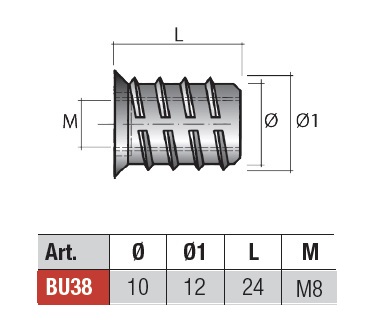 BU38ZL Футорка М8х24 мм (цинк без покрытия)