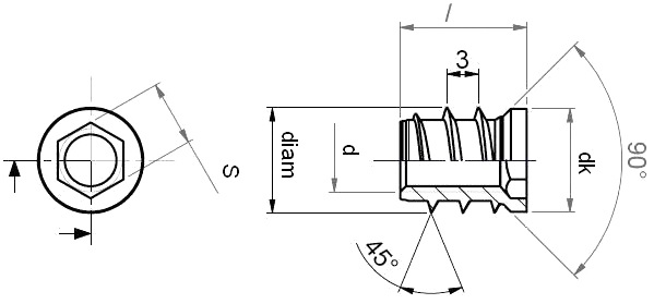 Резьба внутренняя, мм