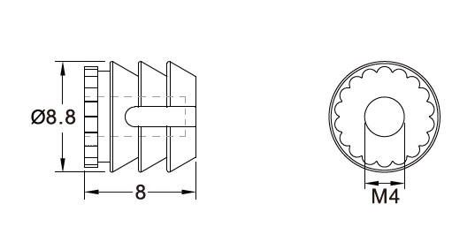 153-08M4-0808-WH Футорка серии 153, M4, 9х8мм, пластик