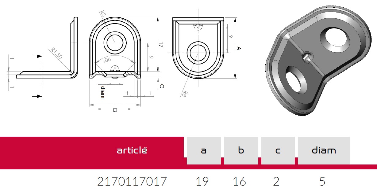 Уголок крепежный 19х19 мм (цинк) арт.2170117017Z
