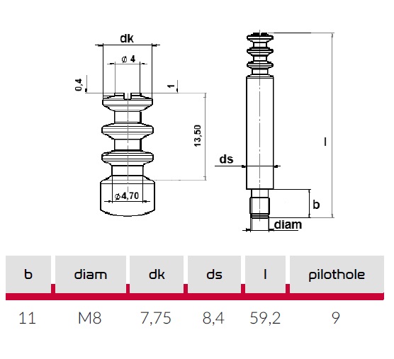 Дюбель кроватной стяжки М8х55 2450108055Z