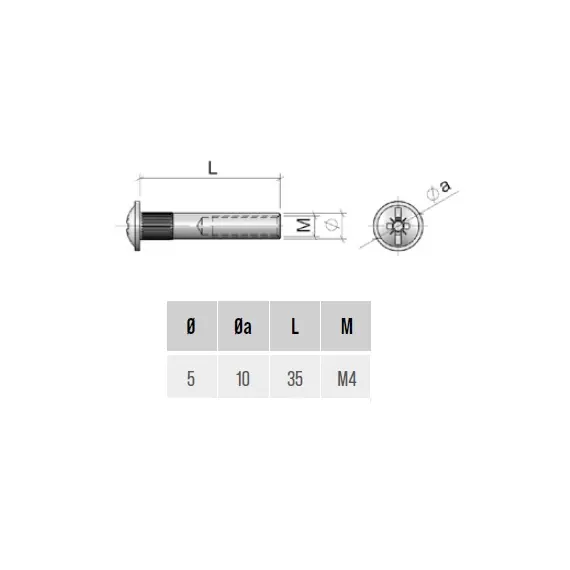 Стяжка межсекционная "мама" D5 мм М4х35 мм с полукруглой головкой, никель арт.VF12FNL