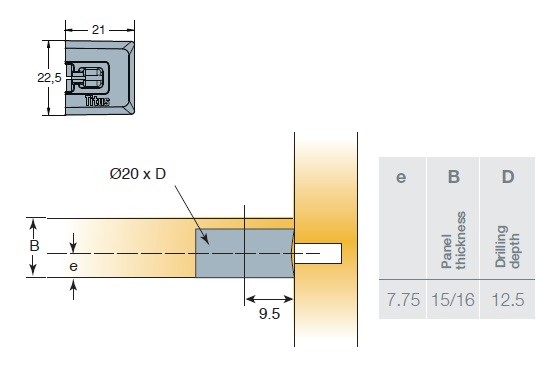 Глубина сверления под эксцентрик, мм