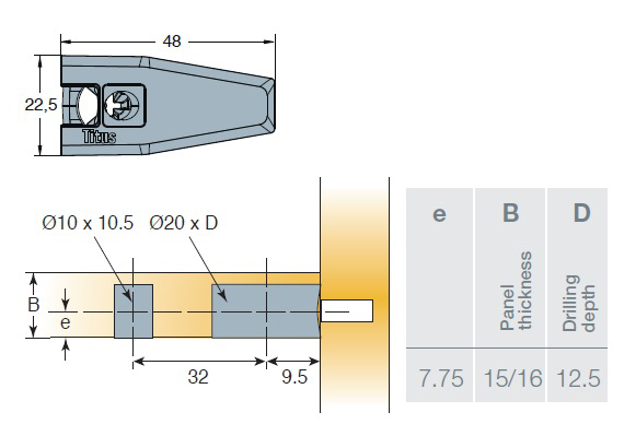 Имеется шлиц в нижней части эксцентрика для закручивания снизу при сквозных отверстиях.