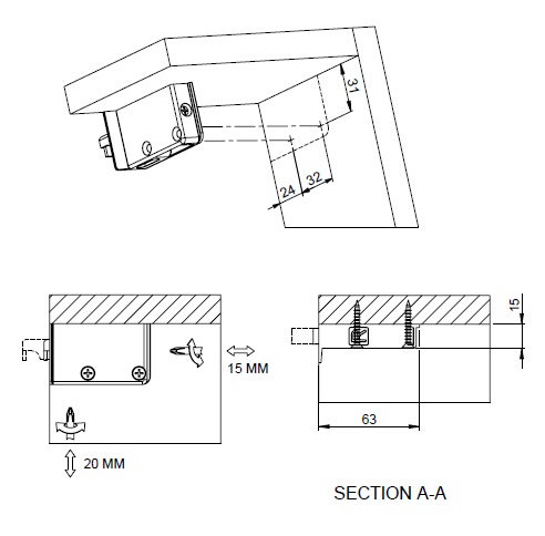 Глубокий ход регулировки позволяет мебельщикам использовать данный навес с разными типами задних стенок корпуса. Задние стенки корпусов устанавливаются при помощи гвоздей (набивные) или специального паза для вставки. В зависимости от метода установки задней стенки меняется расстояние от навеса до шины.