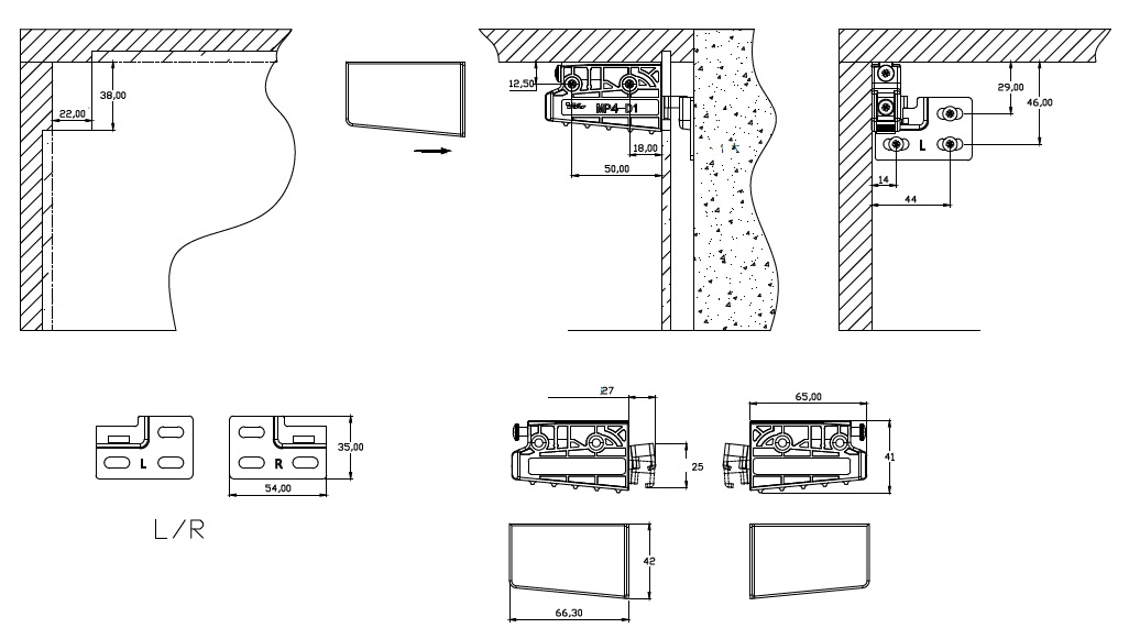 Навес с заглушкой устанавливается в угол кухонного корпуса. Регулировка с помощью винтов. Шины и заглушки поставляются отдельно. Нагрузка на пару 150 кг