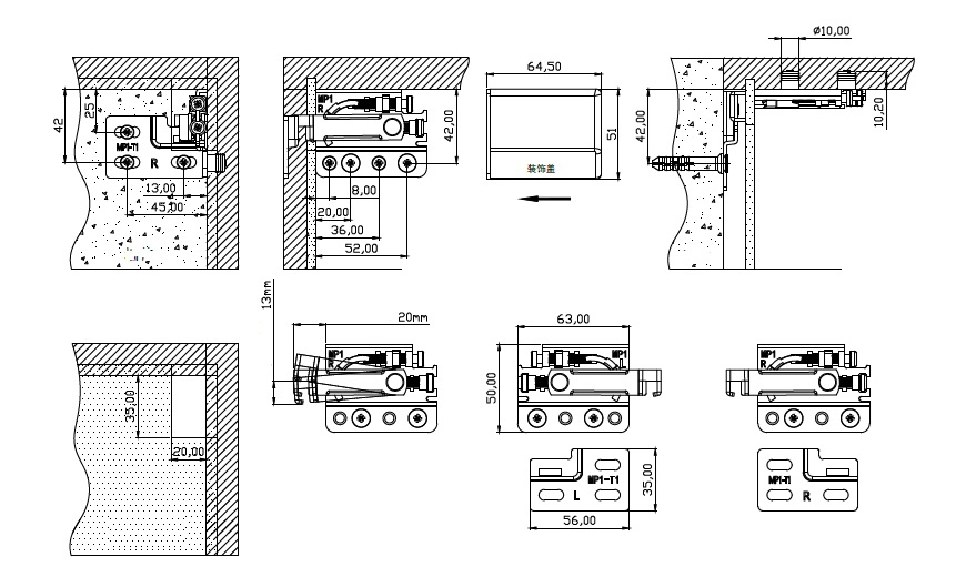 Навес с заглушкой устанавливается в угол кухонного корпуса. Регулировка с помощью винтов. Шины и заглушки поставляются отдельно. Нагрузка на пару 150 кг