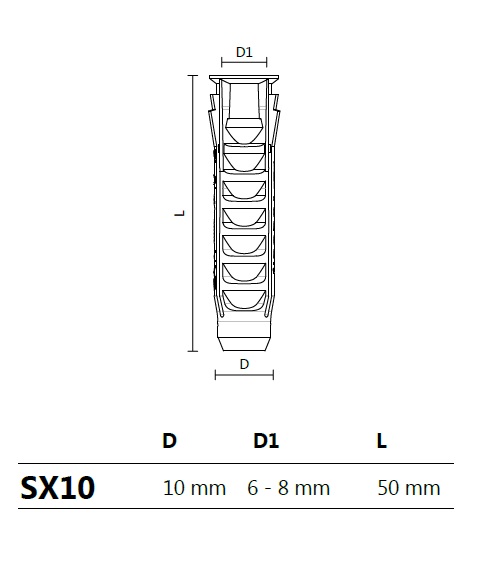 Дюбель пластиковый 10х50 мм (20328) арт.SX10