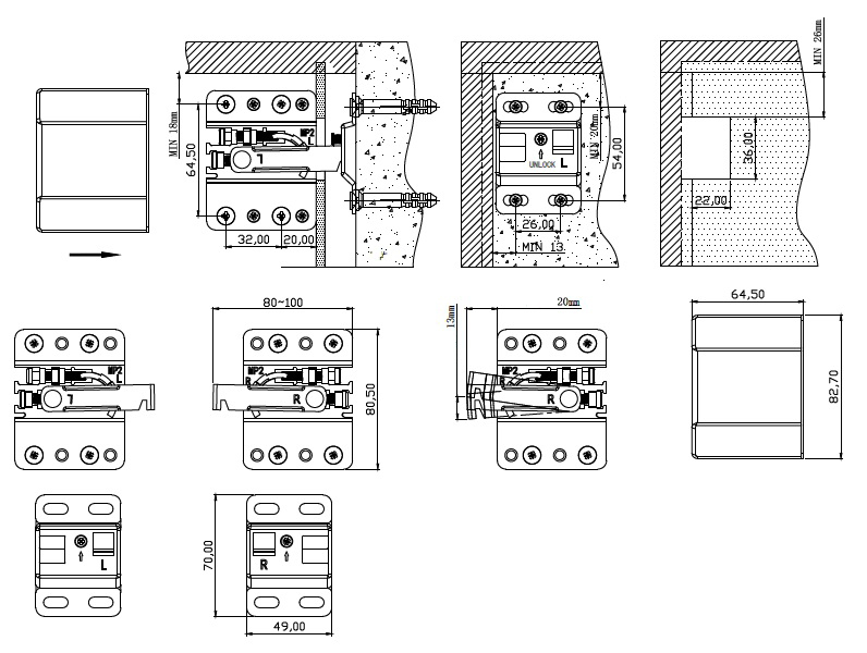 MP2 rail with UNLOCK screw