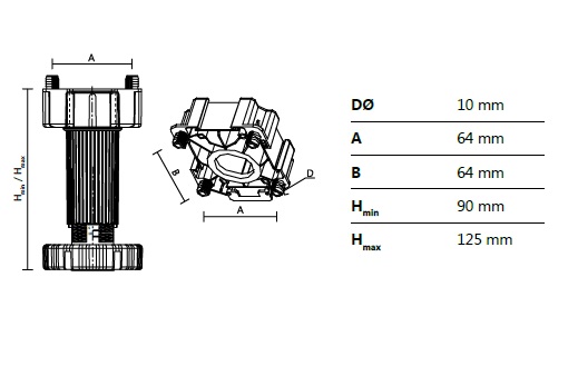 Ножка-опора регулируемая 90 мм Kum-Plast арт.434100