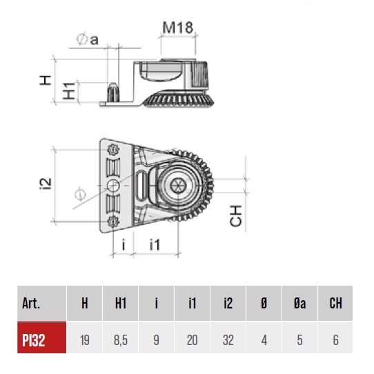 Опора регулируемая, 2 штыря d=5 мм арт.PI32ZL