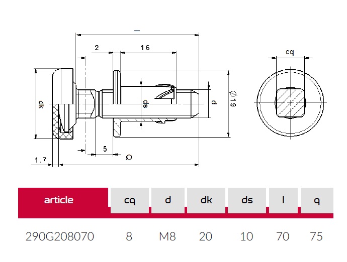 Опора регулируемая M8X70 арт.290G208070Z