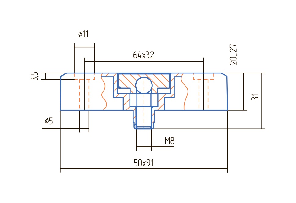 Опора регулируемая прямоугольная ОРП 20-К Хром матовый