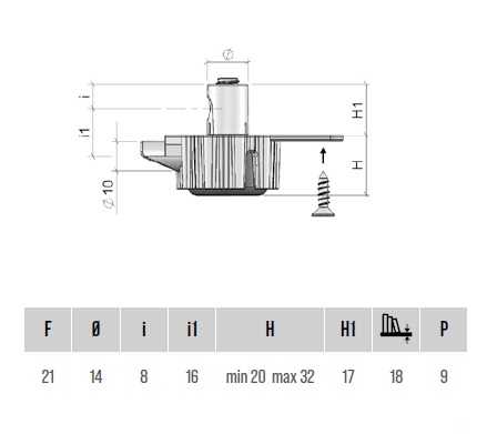 Опора регулируемая Trio 20мм d14мм арт.PI86ZZ