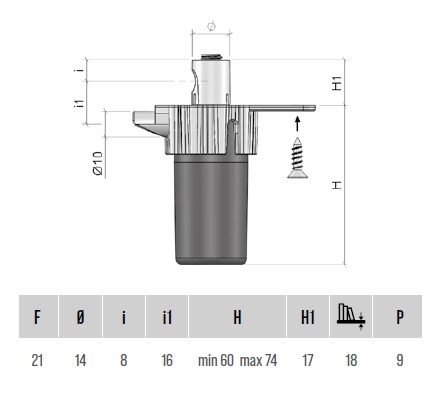 Опора регулируемая Trio 60мм d14мм арт.PI87ZZ