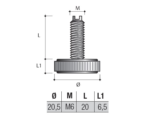 Опора регулируемая M6x20, D20 арт.PI10PNE
