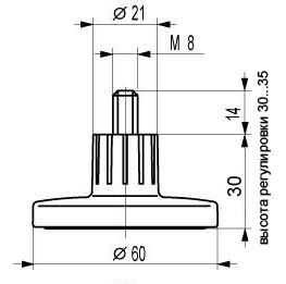 Опора мебельная регулируемая Валмакс H-020 030 St, сатин светлый.