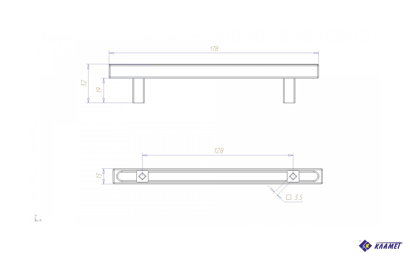 Ручка скоба квадратная для мебели Кламет РСК-128, 128 мм, никель матовый
