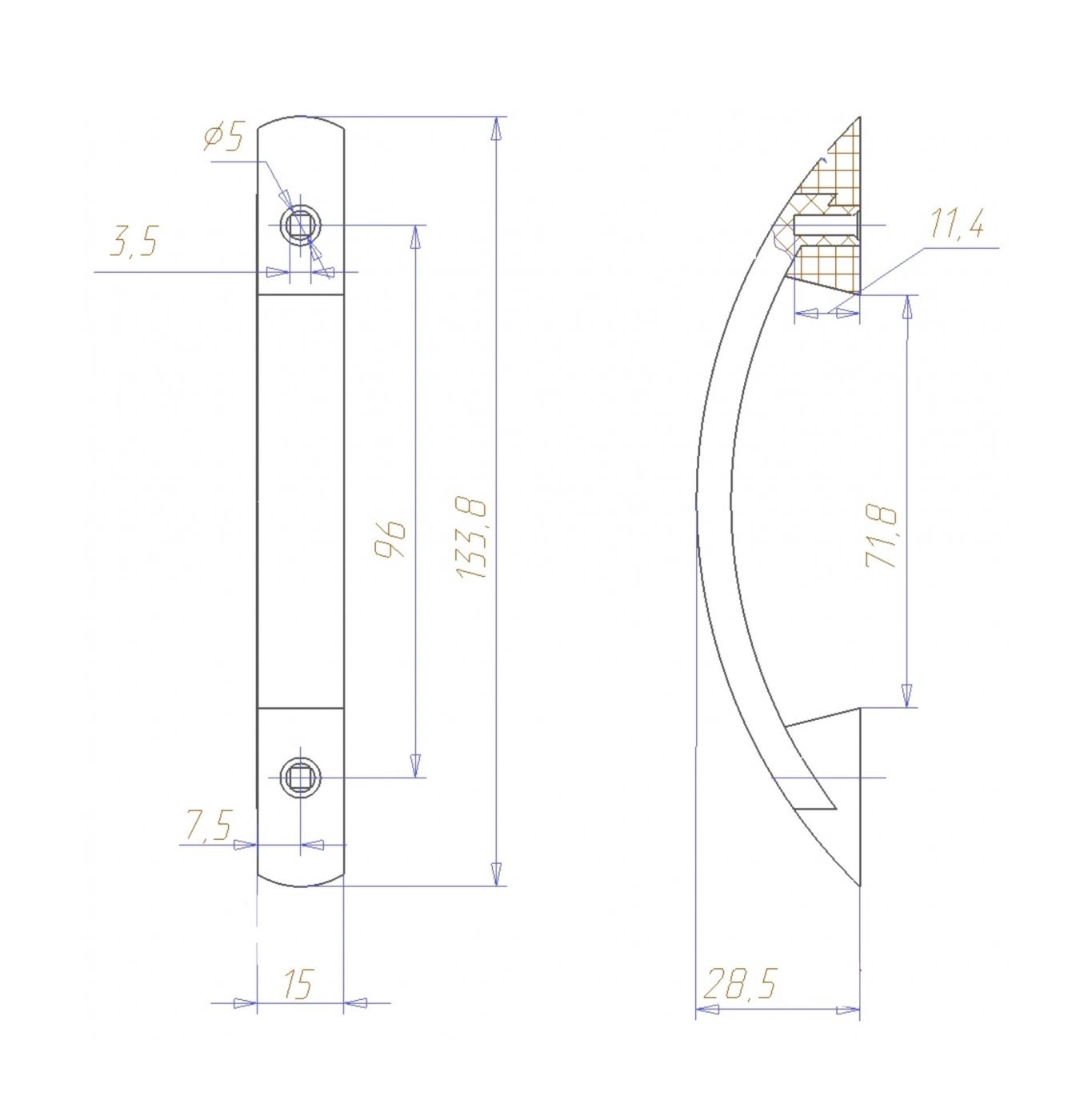 Мебельная ручка Кламет РС 27, скоба 133.5/15/28.5 мм, хром матовый бук.