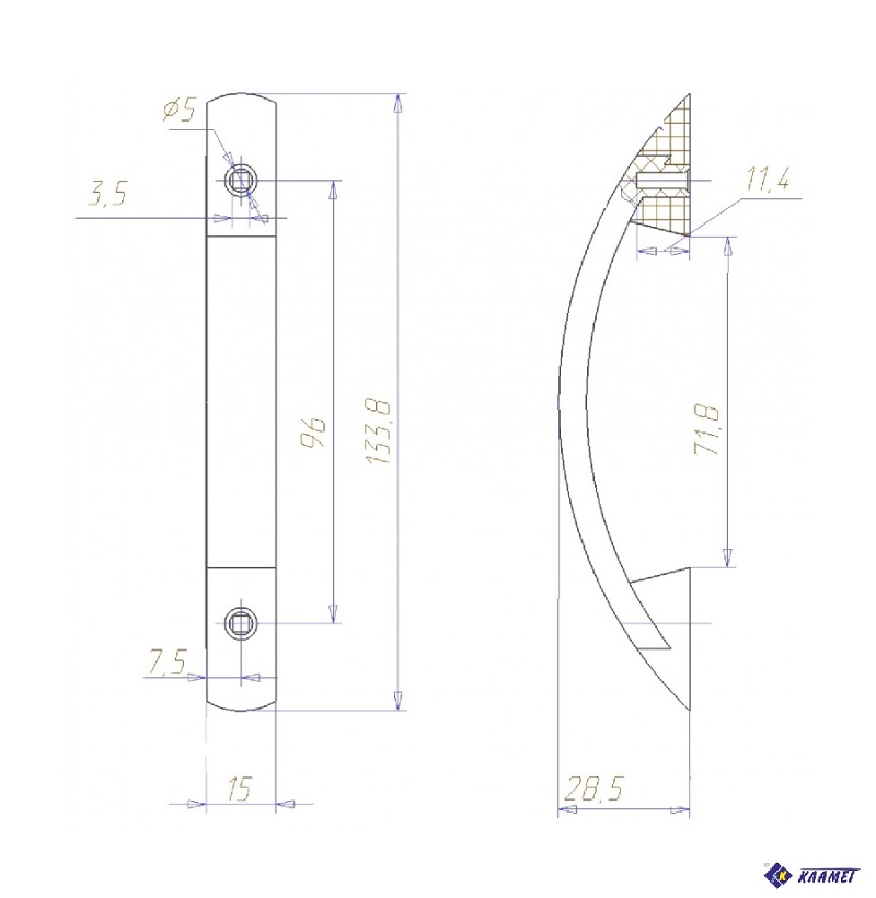 Мебельная ручка Кламет РС 27, скоба 133.5/15/28.5 мм, золото красная вишня.