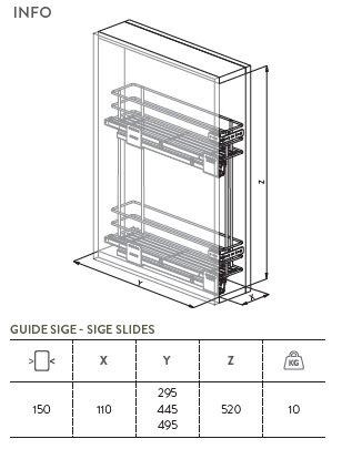 Корзина выдвижная, левосторонние направляющие полного выдвижения SIGE, доводчик, корзина из проволоки, глубина 450 мм, шкаф 150мм
