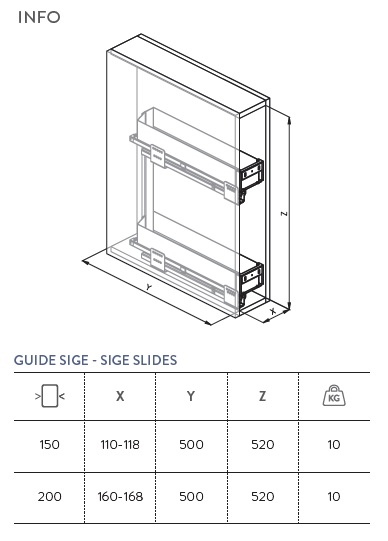 Корзина выдвижная, левосторонние направляющие полного выдвижения SIGE, доводчик, корзина из листового металла, шкаф 200мм