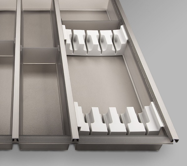 Подставки для ножей используются в качестве вставок в лотки Ninka Cuisio, которыми могут быть укомплектованны ящики Tekform Slimline Titus, Tandem Box Blum, Nova Pro Grass, Innotech Hettich глубиной 500 мм. Подставка состоит из двух передвижных держателей, которые устанавливаются в одну из секций лотка, держатели можно сдвигать и настраивать под длину ножей. Подставки применимы только для лотков определенных размеров.