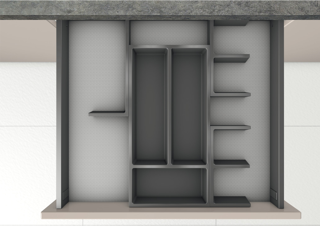 Система разделителей Connect создает порядок внутри ящиков. Элементы спроектированы в практичном формате 25 мм сетки, с гармоничным, прямым дизайном, и могут быть соединены друг с другом, образуя неограниченное количество вриантов компановки. Система работает с системой выдвижных ящиков любых производителей с любой глубиной и шириной.
