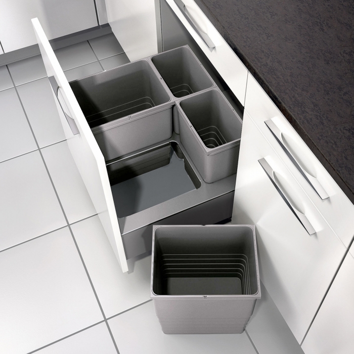 Система из 13 контейнеров различной вместимости и типоразмеров, которые можно использовать для практичного и эффективного разделения отходов или для хранения чистящих средств. Контейнер можно использовать как по отдельности, так и в комбинации с другими типоразмерами.