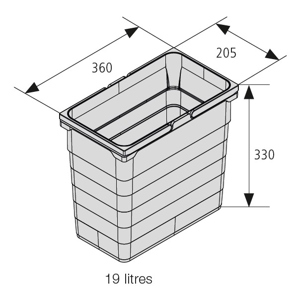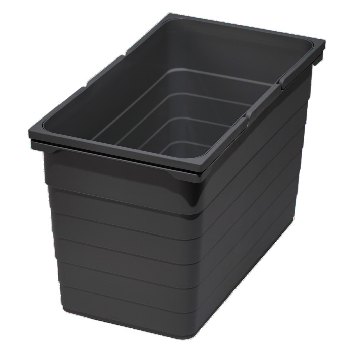 Изготовлены из литого под давлением пластика двух цветов (Серый алюминий и Темно серый), пригодного для вторичной переработки. Ручки из прочного стекловолокна служат для фиксации мусорных пакетов, а также для извлечения и переноски контейнера.