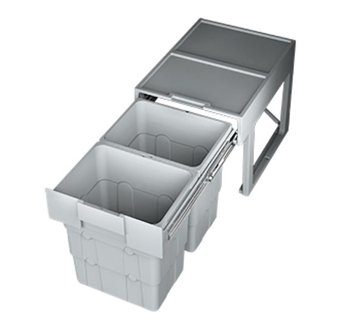 - Устойчивая отделка (RAL7040 Серый), оптимизированный дизайн и небольшие размеры зазора между ручками и ящиками обеспечивают чистое и гигиеничное разделение отходов;