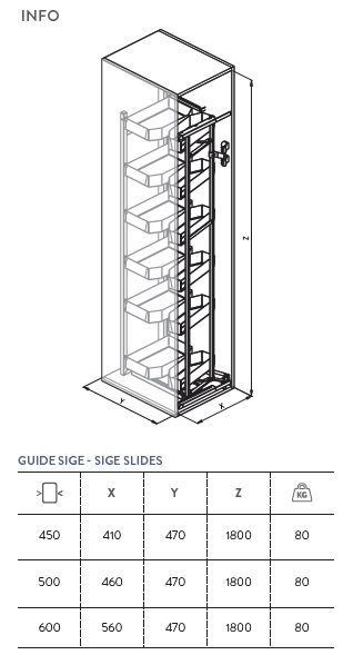 Колонна выдвижная, направляющие полного выдвижения SIGE, доводчик, 12 корзин из листового металла, шкаф 500мм
