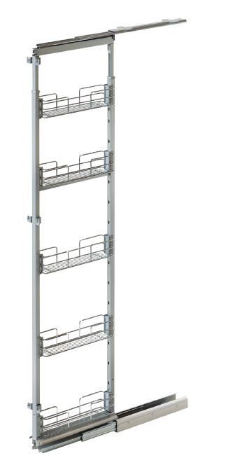 Колонна выдвижная, направляющие полного выдвижения Thomas Regout, доводчик, нагрузка 80 кг, 5 корзин из проволоки, крепления к двери, шкаф 200мм