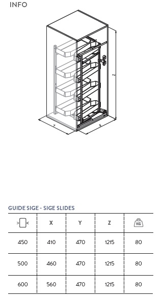 Колонна выдвижная, направляющие полного выдвижения SIGE, доводчик, 8 корзин из листового металла, шкаф 450мм