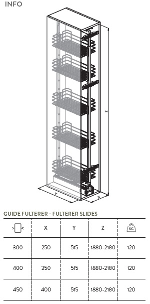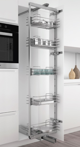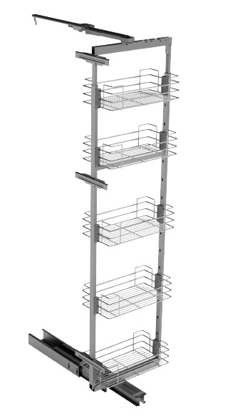 Колонна выдвижная поворотная, направляющие полного выдвижения, доводчик, 5 корзин из проволоки, нагрузка 120 кг, шкаф 300мм