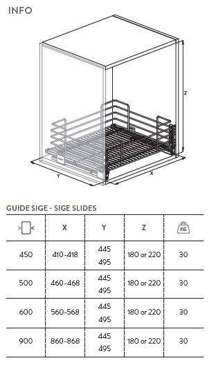 Корзина-ящик, направляющие полного выдвижения SIGE, доводчик, корзина из проволоки, высота 200 мм, шкаф 500мм