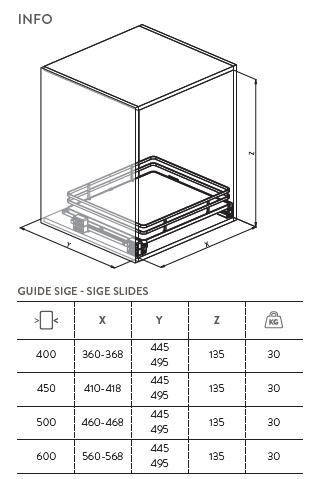 Корзина-ящик, направляющие полного выдвижения SIGE, доводчик, дно из меламина, корзина из плоской проволоки, шкаф 500мм
