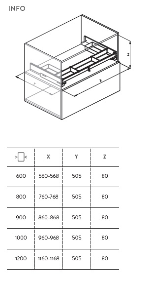 Органайзер под мойку из листового металла с 2 подвижными лотками и разделителями. Доступно для Legrabox, Tandembox, Nova Pro Scala