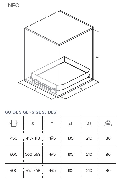 Ящик выдвижной, направляющие полного выдвижения SIGE, доводчик, из листового металла, высота 210 мм, шкаф 300мм.