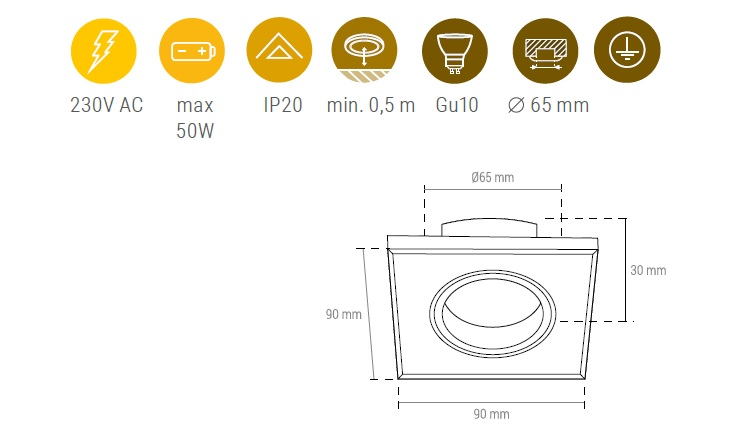 Комплект светильник MARS (без LED) + розетка GU10, белый арт.MARS-BI-01