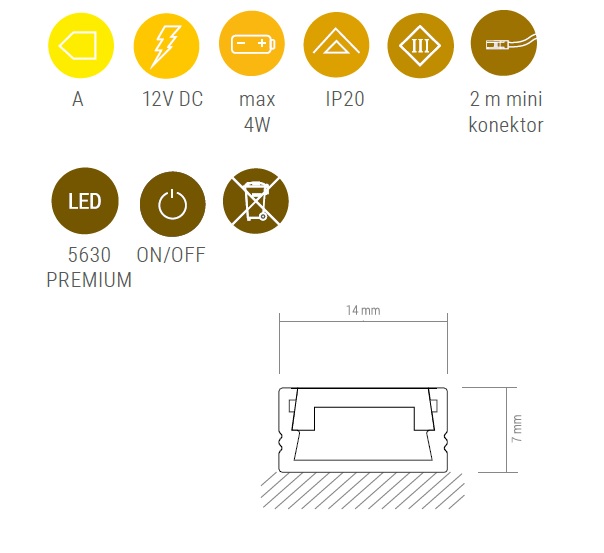 Светильник LED MASTER 4W 12VDC 3000K, провод 2 м, молочный рассеиватель арт.MASTER-4,0W-30K-01W